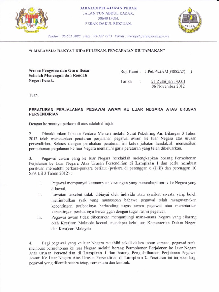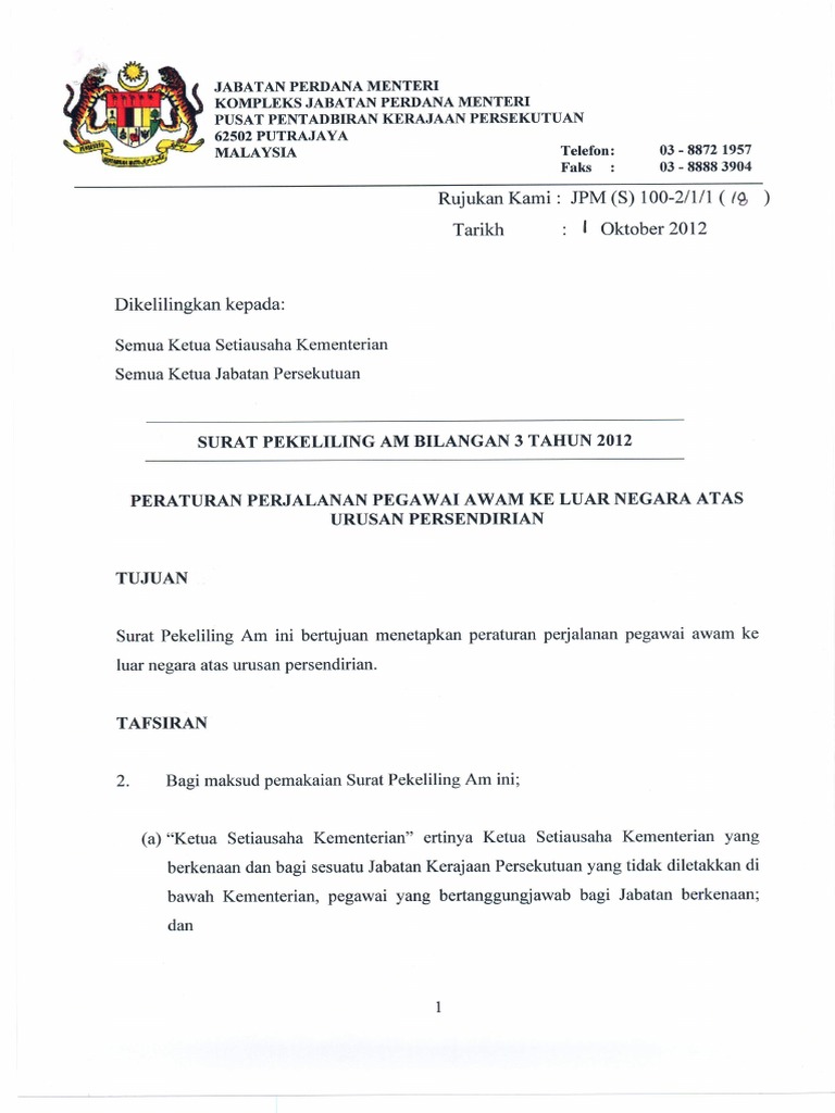 Surat Pekeliling Am Bilangan 3 Tahun 2012 Peraturan Perjalanan Pegawai Awam Ke Luar Negara Atas Urusan Persendirian
